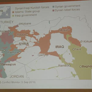 Entstanden durch das politische Vakuum in einer Region so groß wie Deutschland, nennt Petra Ramsauer die „Symbole“ des Islamischen Staates: den Sektenkult, den „Staat“, die Terrorgruppe und die Verbindung mit der Bevölkerung.